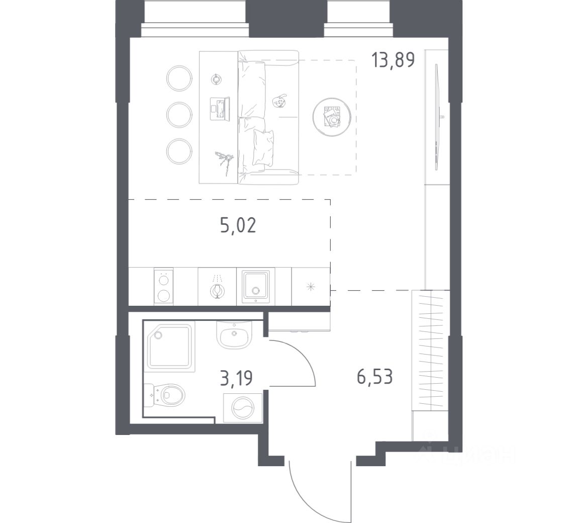 Общая площадь28,63 м2