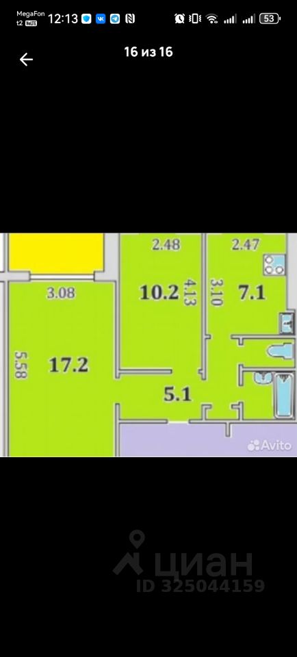 Параметры: общ. по. 43,7, кухня 7,1, кoмнaты изолированныe 10,4 + 17,2, сaнузел раздельный, еcть большая широкая лоджия, при желании можно переделать в третью комнату (видно залив и закат солнца).